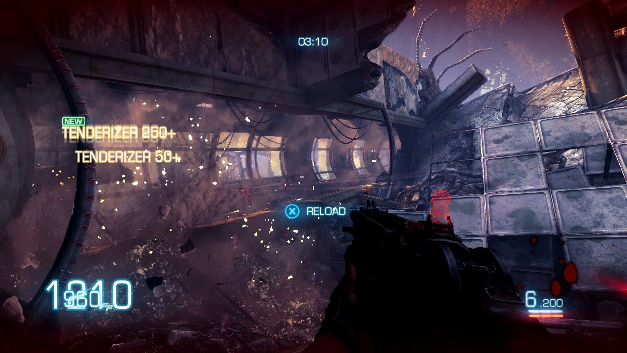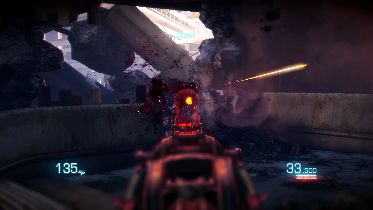 In terms of performance, Bulletstorm runs at a smooth 30fps for most of the time, only slowing down mildly when the load increases beyond what the engine can cope with. Usually having several enemies on screen at once, along with a few explosions usually is the root cause. But this rarely happens for long periods, nor are the drops severe in nature.